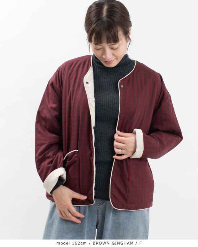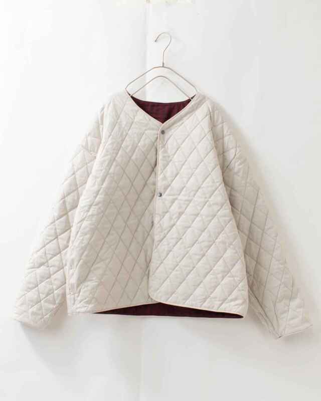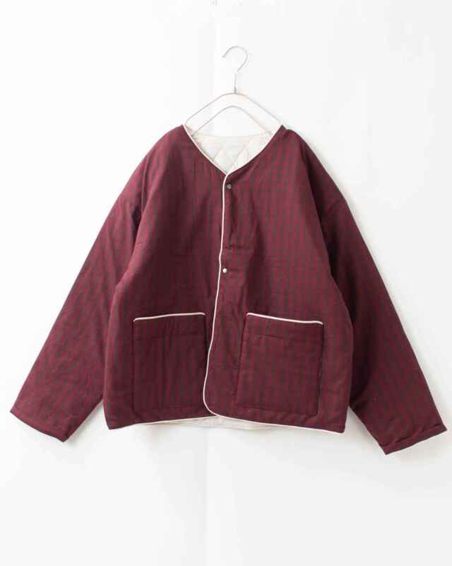 裏面がキルトステッチのリバーシブル仕様のジャケットです。配色を利かせたコード入りパイピングがポイントです。
