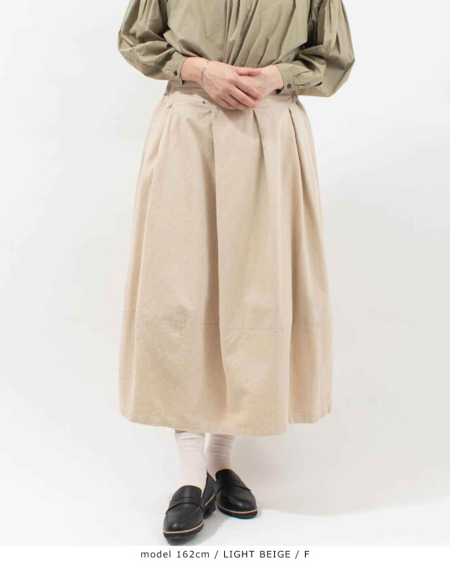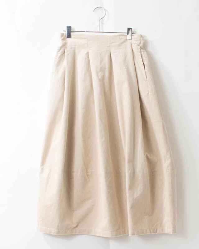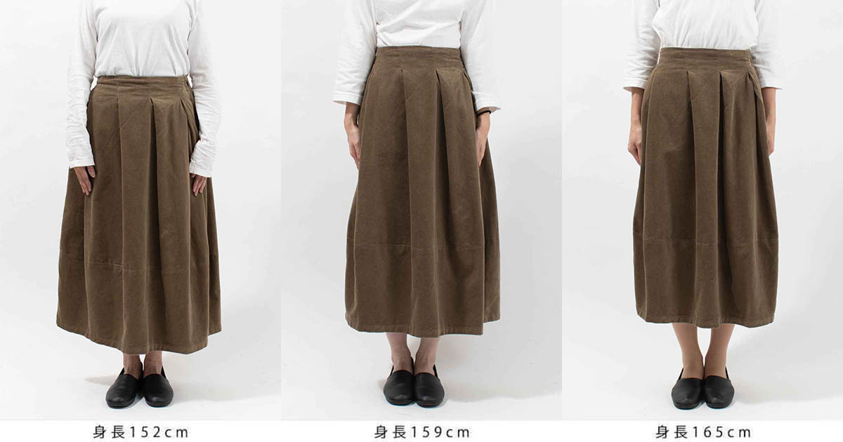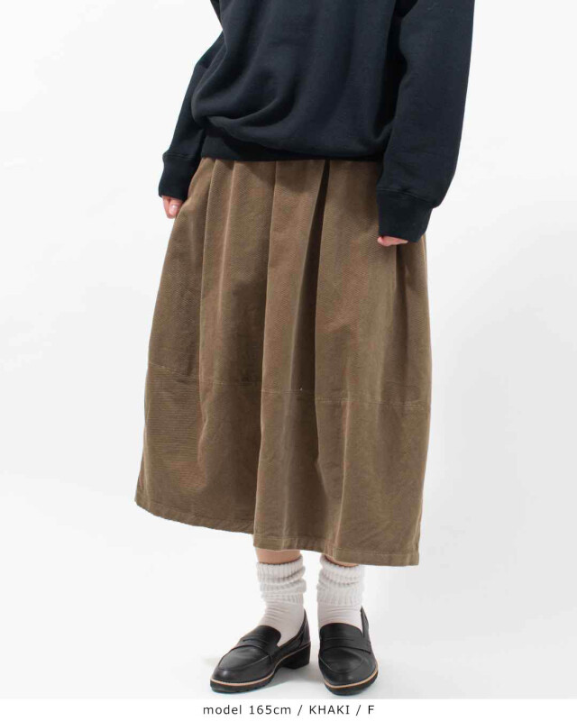 通常のコーデュロイは縦畝ですが、綾目のように見える織り方が特徴のコーデュロイコクーンスカートです。