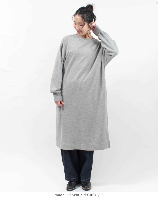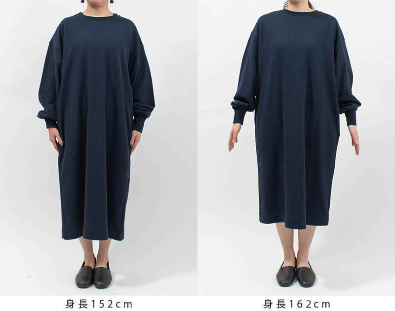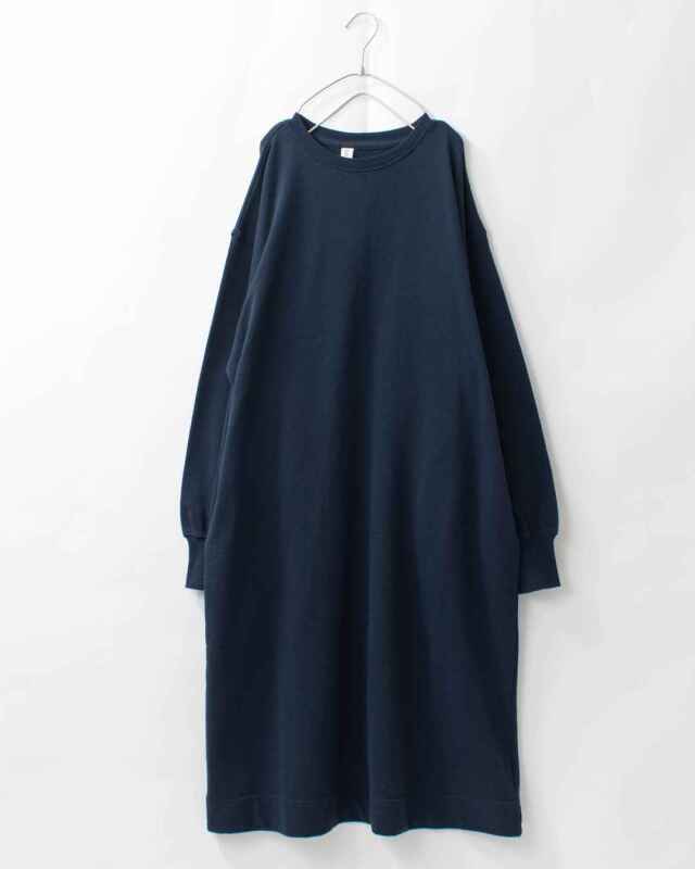身幅や袖周りにボリュームを持たせたシルエットが特徴のワンピースです。ふんわりとした柔らかな肌触りと軽さが特徴の裏毛素材を使用しています。