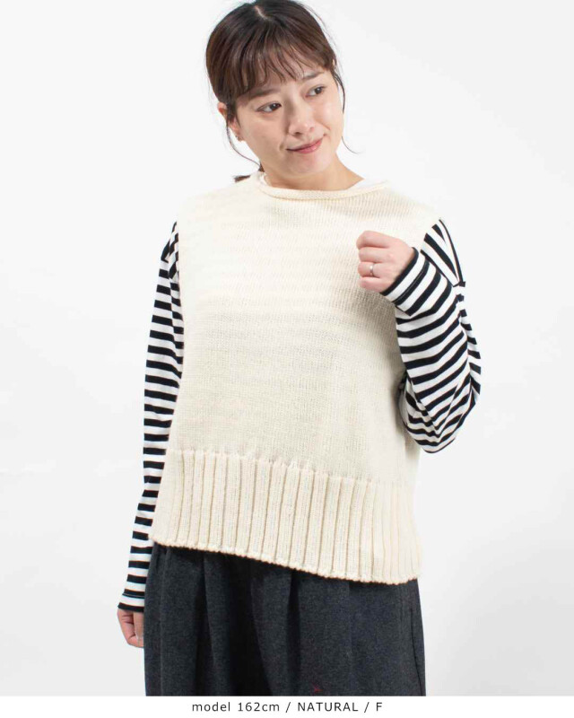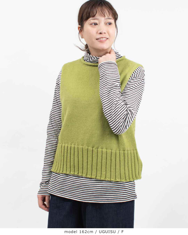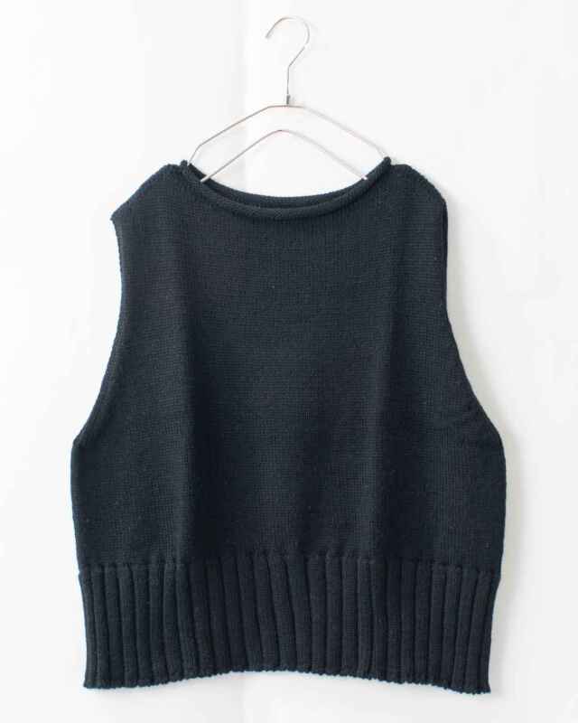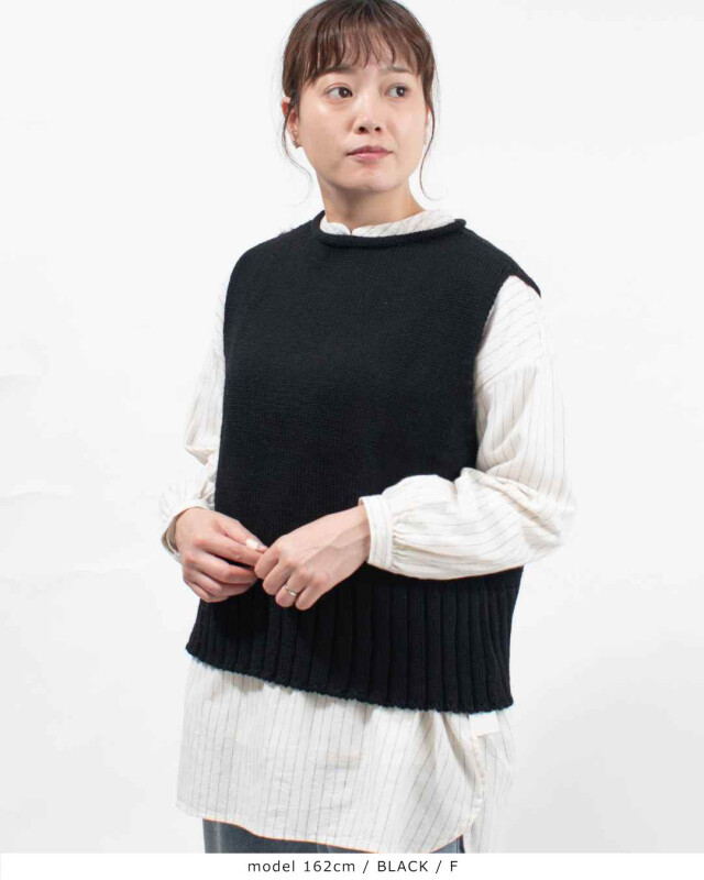 裾にとった幅広いリブがアクセントのベストです。程よくフィットするボディですが、