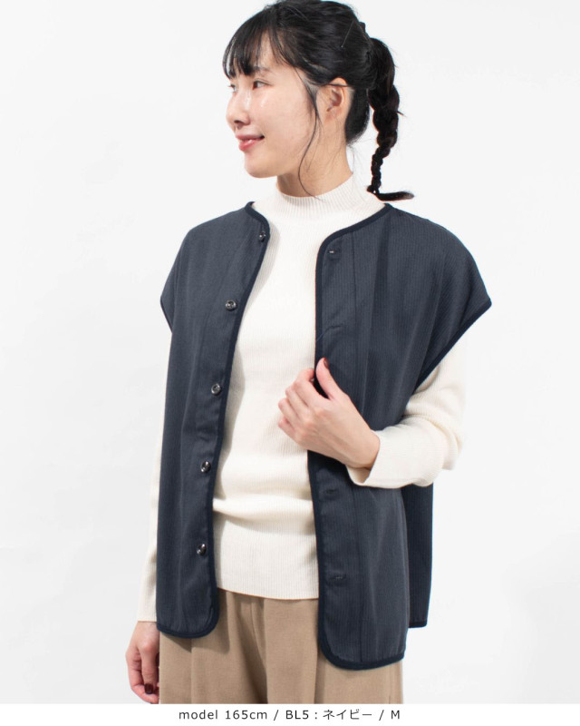 フロントボタンでコーデのアレンジもしやすく、軽いのに暖かい、デイリー使いに最適な1枚です。