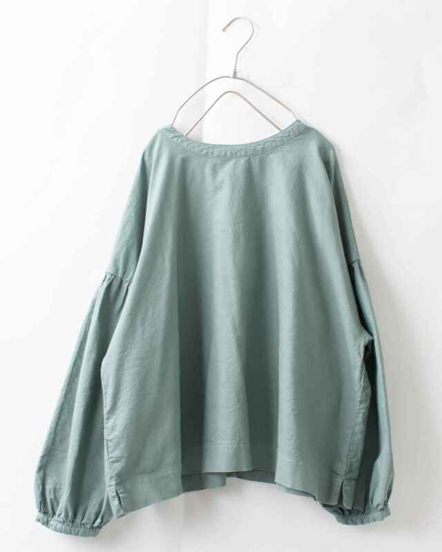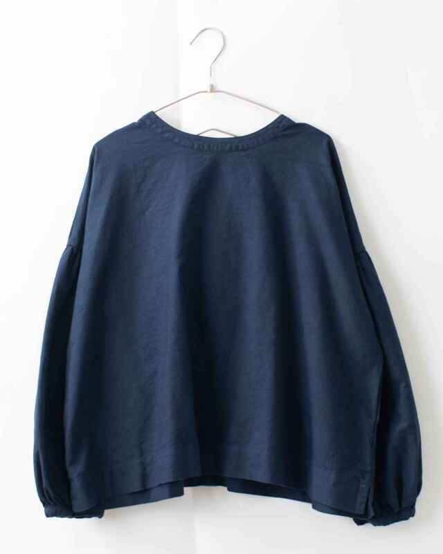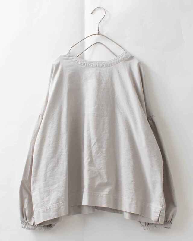 裾に向かってすとんと落ちるワイドボックスシルエットで、身頃はギャザーを入れずすっきりとした印象に。