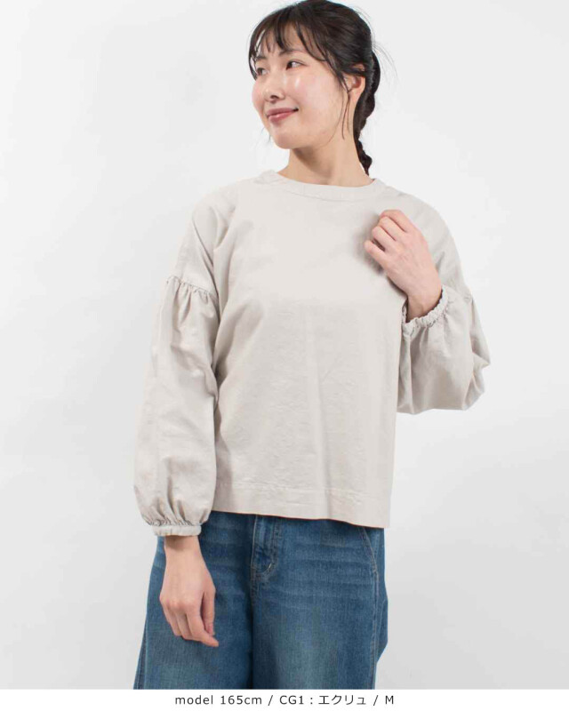 一方、袖にはたっぷりとギャザーを施し、ふんわりとした立体感をプラスしています。