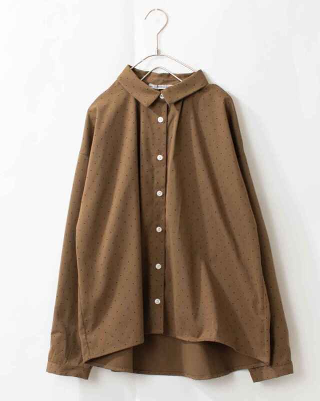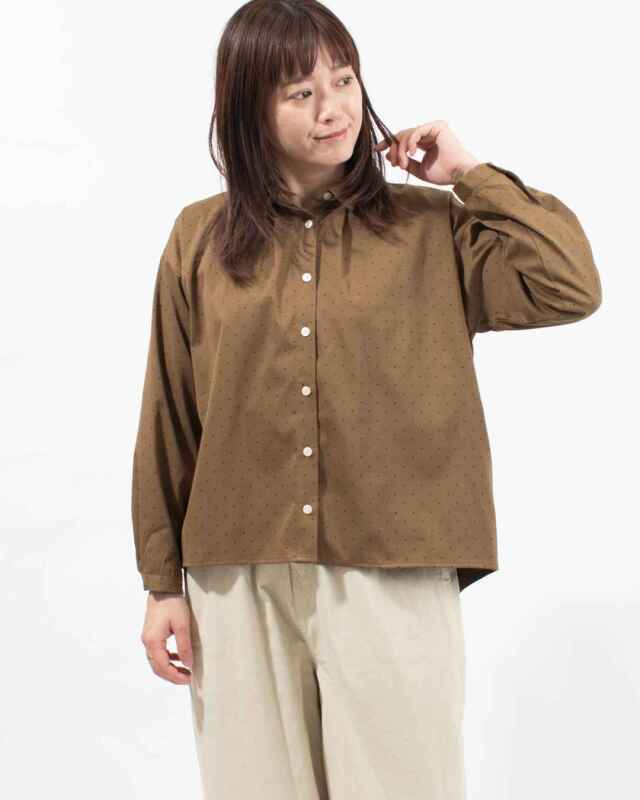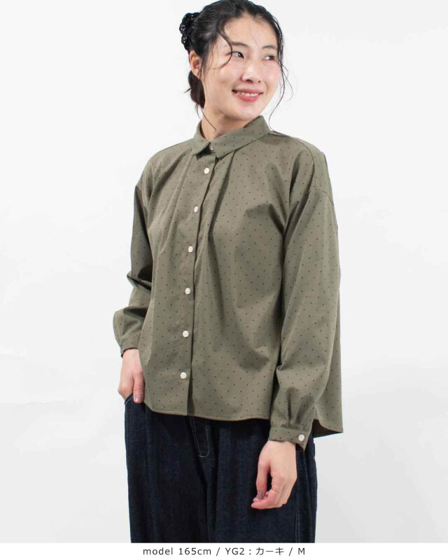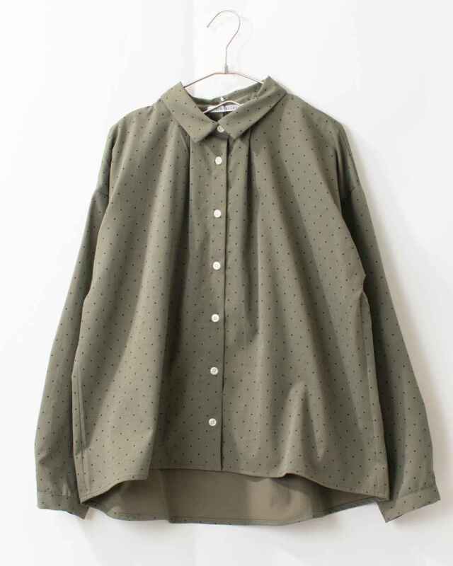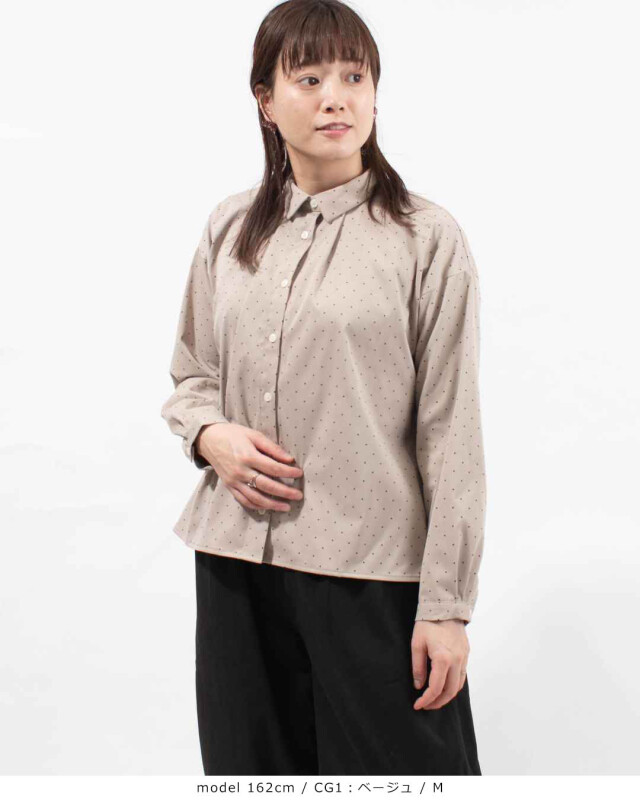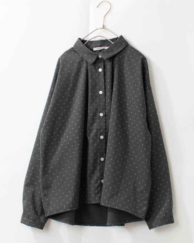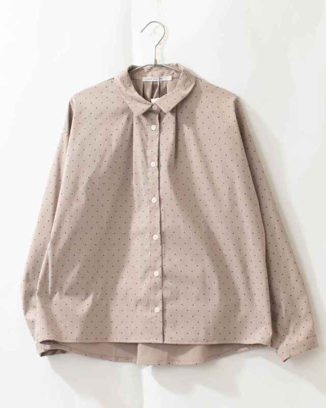 柔らかく落ち感のあるしなやかな風合いの素材です。細かなドットプリントが愛らしいさり気ない雰囲気を演出します。