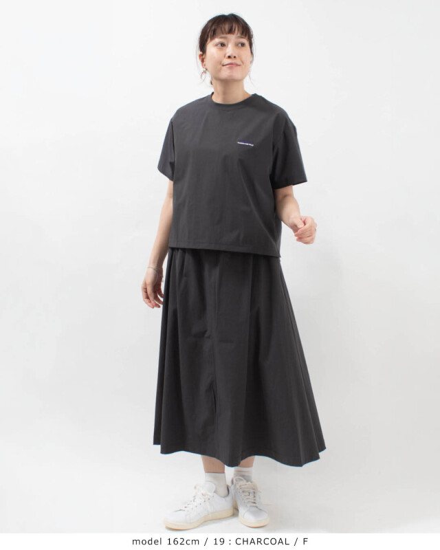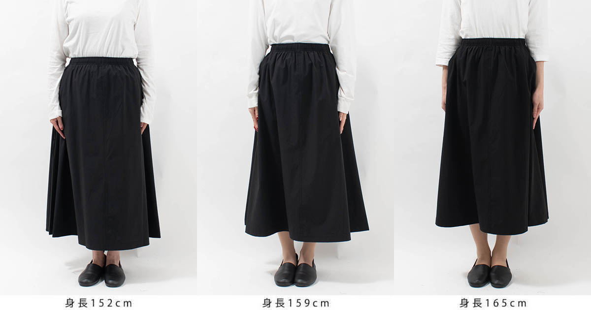 ボトムスは、腰まわりを優しく包むフレアシルエットのスカート。