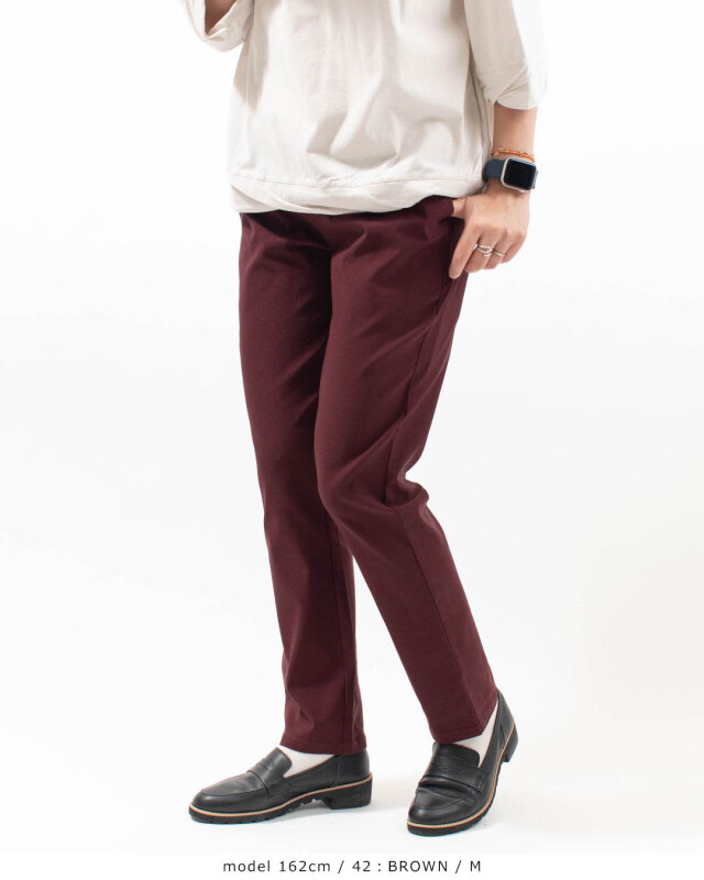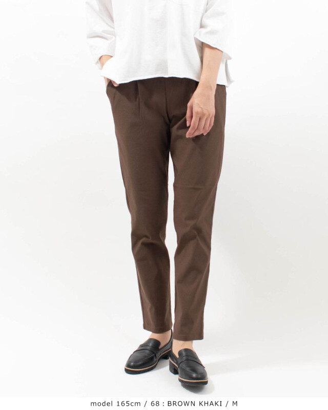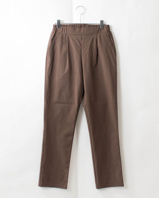 お仕事にもお出掛けにも使えるシルエットの定番のテーパードパンツです。カジュアル過ぎない、抜群のストレッチ素材は病みつきです。
