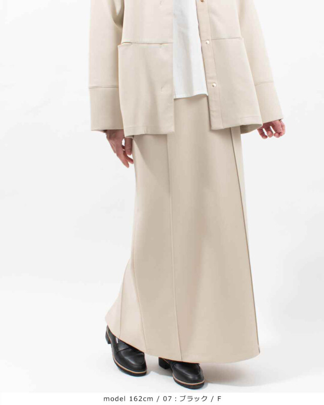 タイトすぎないシルエットで、ハリのある素材が体のラインを拾いにくいのもポイント。