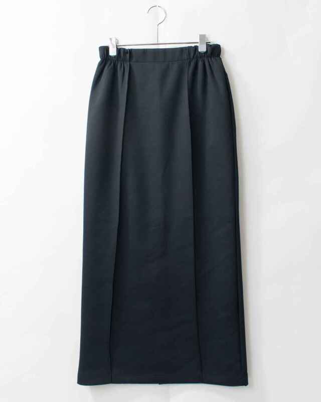 きれいめな印象で着用できる、ダンボール素材のピンタックロングスカート。縦ラインを強調するピンタックが、すっきりとした細見えシルエットを演出します。