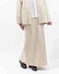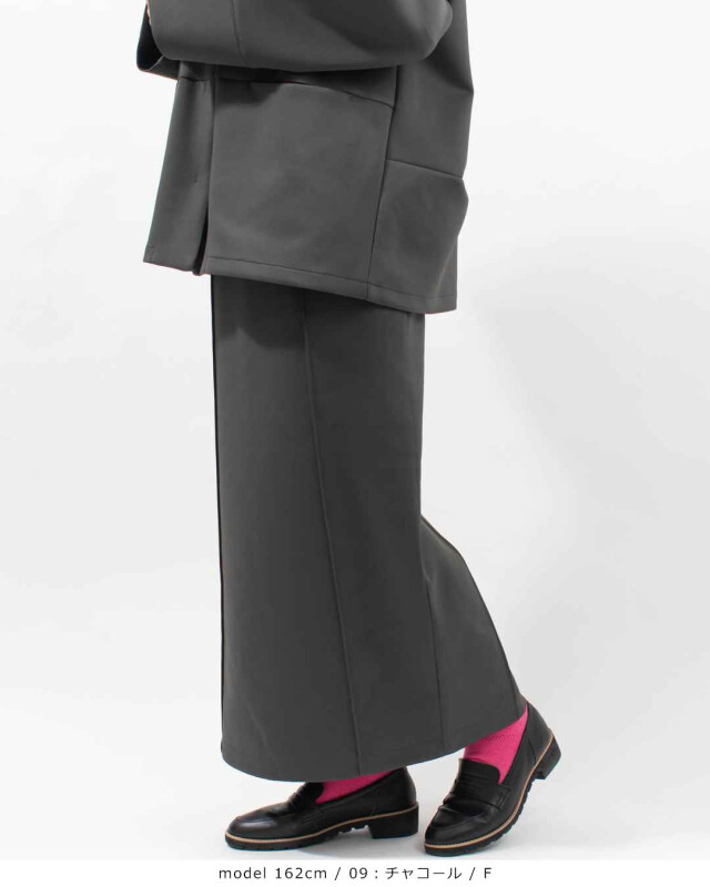 後身頃裾にはベンツを入れ、さらに重なりのあるスリット仕様にすることで、