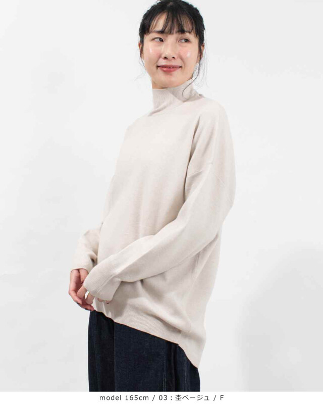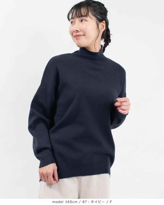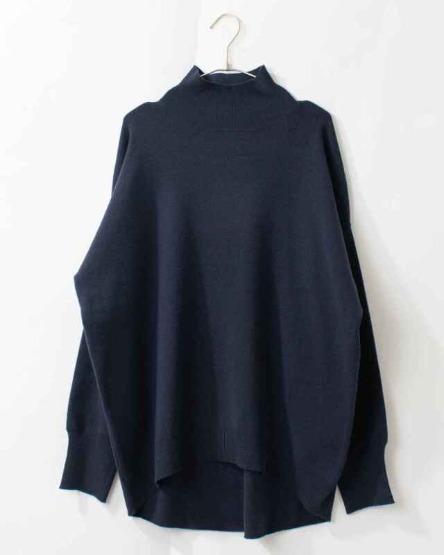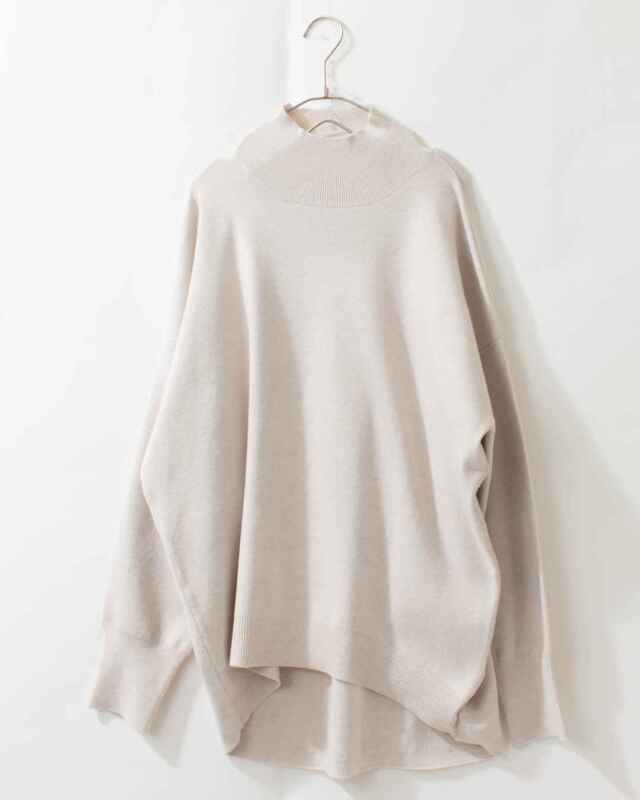 前後差をつけた身丈で、ヒップ周りもさりげなくカバーしてくれるニットプルオーバー。ヘムラインは前後でリブ幅を変え、腰回りにフィットしすぎない絶妙さが嬉しいシルエットにしています。