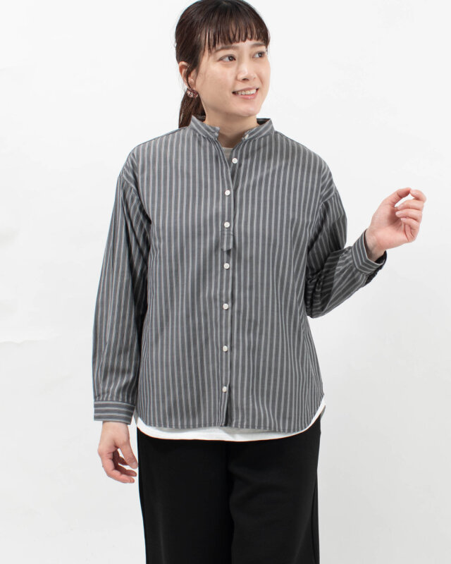 SUN VALLEY コットンドビーストライプ スタンドカラーシャツ