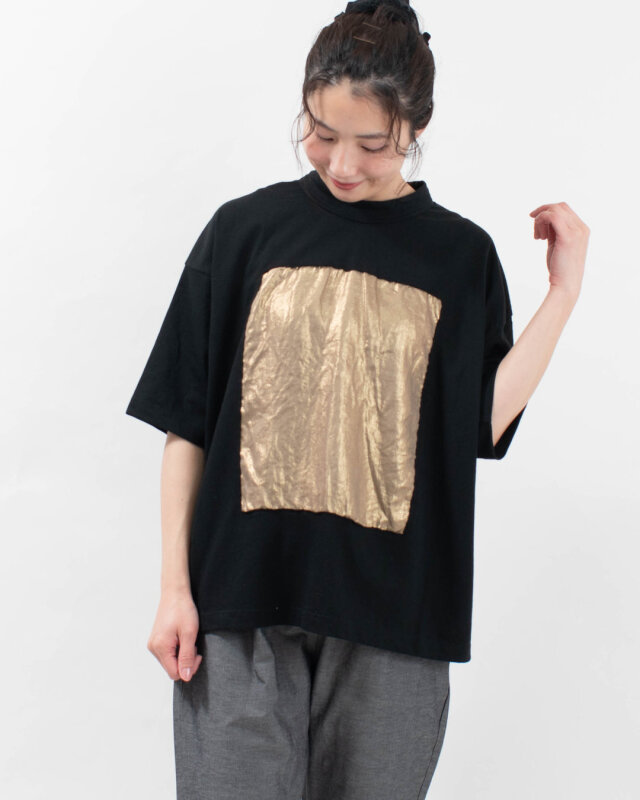prit 17/1空紡天竺×40/1リネン箔プリント5分袖フレームTシャツ